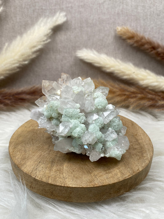 Prehnit auf Quarz Cluster (3)