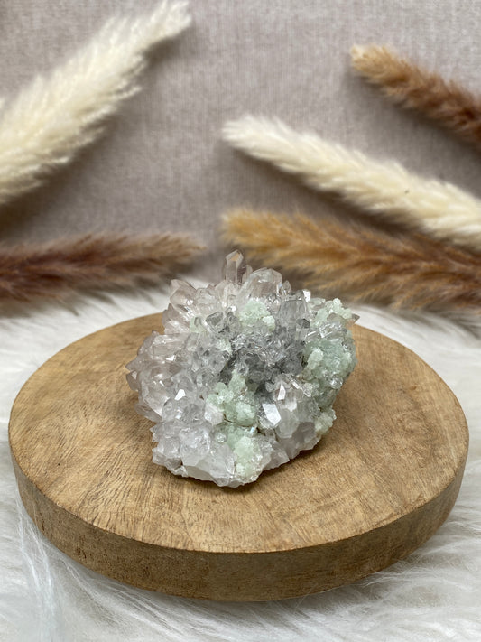Prehnit auf Quarz Cluster (7)