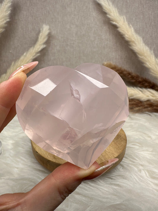 Facettiertes Rosenquarz Herz